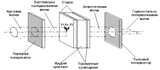 В анизотропных средах могут распространяться только волны, поляризованные линейно. При заданном направлении света разрешены только два взаимно ортогональных направления поляризации, определяемые параметрами анизотропии среды, именно с этим обстоятельством связана электрооптическая модуляция света. Скорости прохождения через жидкий кристалл ортогонально поляризованных волн различны.