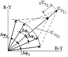 . Если в тракте возникнут дифференциально-фазовые искажения, то независимо от их причин векторы