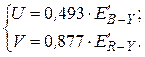 и два цветоразностных сигнала U и V. Сигналы U и V равны цветоразностным сигналам