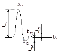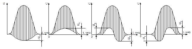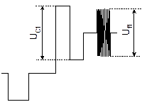 Размах двух отстающих выбросов импульса В1 (Ub1 и Ub2) определяется разностью уровней, на которых располагаются экстремальные значения искажённого синусквадратичного импульса (т.b12 и b13), и уровнем гашения (т.b1). Величина выброса считается положительной, если уровень, на котором располагается т.b13 (т.b12), выше уровня, на котором располагается т.b1.
