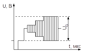 Определение переходной характеристики в области малых времён осуществляется по элементу В1 (17 или 330 строки). Измеряются относительный размах синусквадратичного импульса и его 2 отстающих выбросов, рисунок 8.8.