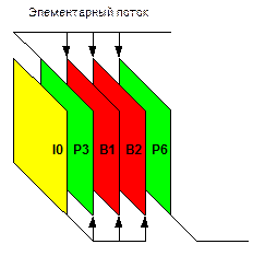 Изображения различных типов объединяются в группы изображений. Любая группа начинается с изображения I типа и описывается двумя числами N и M. N показывает количество изображений в группе, М – интервал между соседними изображениями типа Р. На рисунке 11.10 показана типичная группа изображений, описываемая числами (12, 3). Здесь изображение I0 – опорное, изображение Р3 кодируется на основе I0, изображения Р6 и Р9 на основе предыдущих Р изображений Р3 и Р6 соответственно. Изображения В1 и В2 - на основе предыдущего I0 и последующего Р3, изображения В4 и В5, В7 и В8 - на основе предыдущих и последующих изображений Р-типа, Р3 и Р6, Р6 и Р9 соответственно, а изображения В10 и В11 на основе предыдущего Р9 и последующего I0, входящего в состав другой группы изображений.