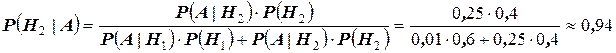 Полученная формула называется формулой Байеса (Бейеса) для переоценки гипотез. Другими словами: вероятность