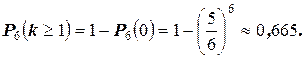. Таким образом, вероятность появления по крайней мере одной «шестерки» при подбрасывании 6-ти игральных костей может быть найдена по формуле: