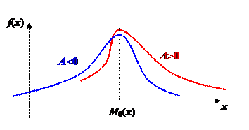 Асимметрия положительна, если «длинная часть» кривой распределения расположена справа от математического ожидания; асимметрия отрицательна, если «длинная часть» кривой расположена слева от математического ожидания. На практике определяют знак асимметрии по расположению кривой распределения относительно моды (точки максимума дифференциальной функции): если длинная часть кривой расположена правее моды, то асимметрия положительна, если слева – отрицательна (см. рис.). Если