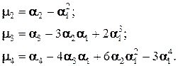 1. Для начальных и центральных моментов справедливы следующие соотношения: