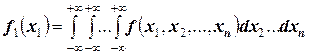Плотность распределения каждой из величин, входящих в систему, получится, если плотность распределения системы проинтегрировать в бесконечных пределах по всем остальным аргументам. Например,