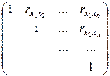 Такая матрица, как вам известно, называется диагональной. Вместо корреляционной матрицы часто используют нормированную корреляционную матрицу. Матрица, элементами которой являются коэффициенты корреляции, называется нормированной корреляционной матрицей. Все элементы главной диагонали нормированной корреляционной матрицы равны единице. Нормированная корреляционная матрица имеет вид:
