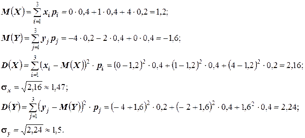 Решение. Складывая вероятности по строкам, получим закон распределения случайной величины