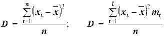) наиболее часто применяется как мера колеблемости признака. Дисперсии невзвешенную и взвешенную вычисляют по формулам: