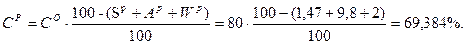 Дано: Со = 80%; Оо = 9%; Но = 8%; No = 3%; Sc = 1,5%; Ac = 10%; WP = 2%.