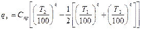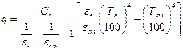 Примем что степень черноты e1 = e2 = eэ. Применяя общее уравнение теплообмена, определим, что плотность теплового потока от поверхности к экрану равна: