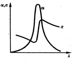 Из рисунка видно, что внутри полосы поглощения наблюдается аномальная дисперсия (