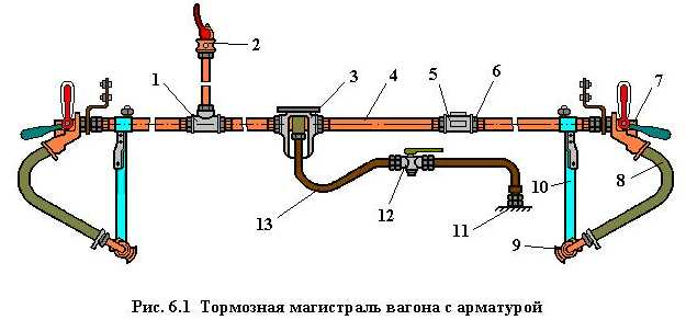 Тормозная магистраль вагона с арматурой представлена на рис. 6.1.