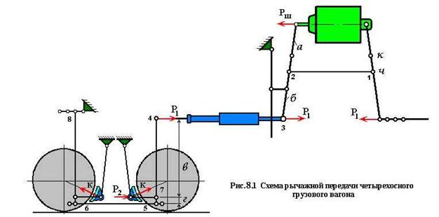 В табл. 8.1 приведены характеристики рычажных передач основных типов грузовых вагонов, эксплуатируемых на железных дорогах России.