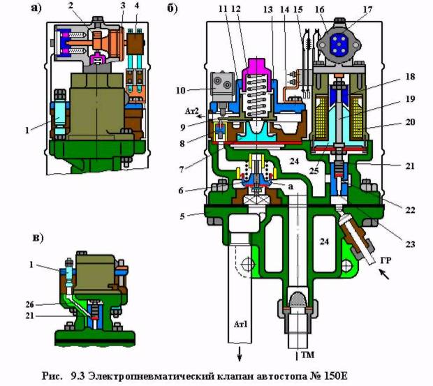 На подвижном составе используются электропневматические клапаны автостопа ЭПК № 150Е и № 150И (рис. 9.3.)