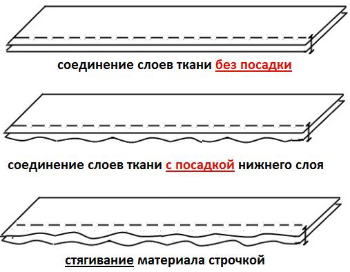 Посадка образуется в результате соединения слоев ткани. А поскольку чаще всего соединяют два слоя ткани, то именно этот пример и будем рассматривать.