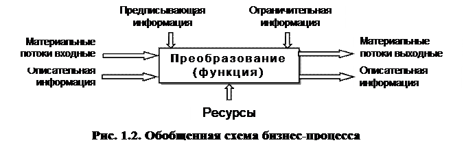 Бизнес-процесс может быть определен как совокупность взаимосвязанных ресурсов и деятельности, которая преобразует входящие элементы в выходящие (ГОСТ Р ИСО 9001-96. Системы качества) или как совокупность операций, преобразующих материальные и/или информационные потоки в соответствующие потоки с другими свойствами (Рекомендации Госстандарта России Р50.1028-2001) – см. рис. 1.2.