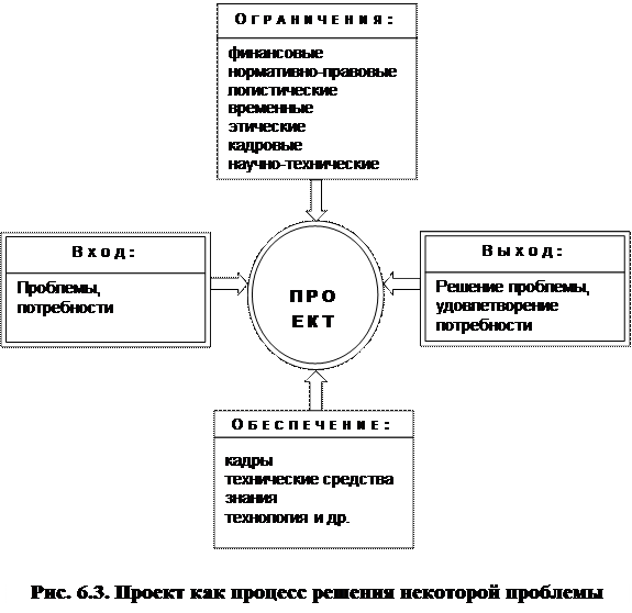 Понятие «проект» (Project) в общем случае объединяет различные виды деятельности, направленные на решение некоторой проблемы, характеризуемой набором исходных данных, требуемыми результатами (целями), обусловливающими способ ее решения – см. рис. 6.3.