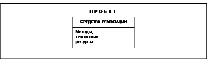Важной особенностью проекта, отличающей его от многих других видов деятельности (например, от производства), является его однократный характер. Проект как система деятельности существует столько времени, сколько требуется для получения конечного результата. Проект в общем случае включает в себя (см. рис. 6.4) замысел (формулирование проблемы, задачи), средства реализации проекта (средства решения проблемы) и цели реализации (получаемые в результате выполнения проекта решения).