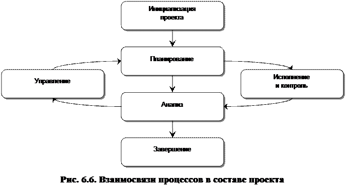 Взаимосвязи процессов в составе проекта представлены в общем виде на рис. 6.6.