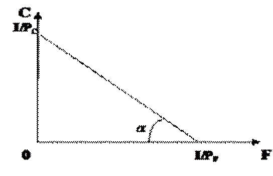 Бюджетное ограничение характеризует реальную покупательную способность потребителя (I) с учетом величины и соотношения цен покупаемых товаров. Графически бюджетное ограничение выражается в виде бюджетной линии – отрезка прямой, все точки на которой показывают комбинации благ, которые потребитель в состоянии приобрести при данных ценах при полном расходовании его дохода. Угол наклона бюджетной линии (tg) определяется обратным отношением цен товаров (PF/PC).