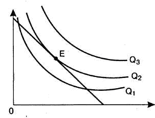 Из рис. 21.6 видно, что изокванта, расположенная ближе к началу координат, дает меньшее количество производимой продукции (изокванта Q1). Изокванты, расположенные выше и правее изокванты Q2, вызовут изменение большего объема факторов производства, нежели позволяет бюджетное ограничение производителя.