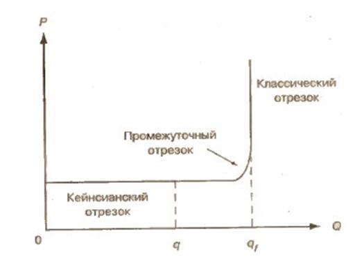 -на горизонтальном, или кейнсианском, отрезке национальный продукт изменяется, а уровень цен остается постоянным