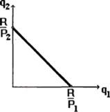 Максимальные комбинации продуктов, которые потребитель может купить, лежит на прямой: