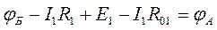 В этой и любой цепи между узлами существует определённое напряжение (оно может быть равным нулю). Определив это напряжение легко вычислить ток в каждой цепи. Для доказательства предположим, что все токи текут к узлу А. обойдём каждую ветвь по направлению тока и выразим потенциалы точек ветвей.