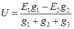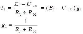 Узловое напряжение равно дроби, в числителе которой алгебраическая сумма произведений ЭДС каждой ветви на проводимость этой же самой ветви, в знаменателе – сумма проводимостей всех ветвей.