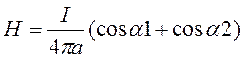 Величина определяется по формулам закона Био-Савара: