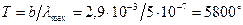 нм, можно определить температуру поверхности солнца с помощью закона смещения Вина: