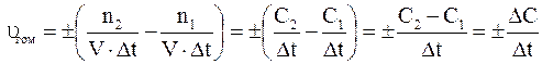 где С1 и С2 → молярная концентрация вещества в начальный (t1) и конечный (t2) моменты времени.