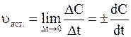 Математически истинную или мгновенную скорость (uист.) реакции принято выражать отношением бесконечно малого изменения количества вещества Δ n (или его концентрации ΔС) к бесконечно малому отрезку времени Δt, в течение которого произошло это изменение, или производной по времени от химического количества вещества либо его концентрации: