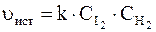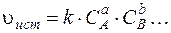 2) u = k · CA · CB (если частицы реагентов разные по своей природе).