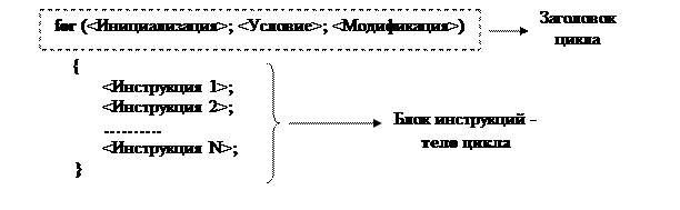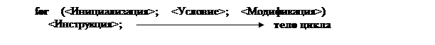 Любой раздел заголовка цикла может отсутствовать. Раздел Инициализации, например, может отсутствовать, когда начальные значения параметров цикла устанавливаются вне цикла, перед его началом. Модификация значений параметров цикла может осуществляться внутри тела цикла, а не в его заголовке. При отсутствии Условия продолжения выполнения цикла, цикл становится бесконечным и для выхода из него придется использовать инструкцию break. Однако, какой бы из разделов ни отсутствовал, соответствующие разделительные символы ‘;’ в заголовке цикла должны обязательно присутствовать: