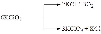 Примером подобного типа реакций является реакция разложения бертолетовой соли KClO3, способная протекать при определённых условиях в двух направлениях