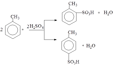 Параллельно по двум и более механизмам может протекать распад ядер атомов некоторых радиоактивных элементов. Особенно часто параллельные реакции встречаются в органической химии. Например, при сульфировании толуола серной кислотой могут одновременно образоваться орто- и парасульфопроизводные: