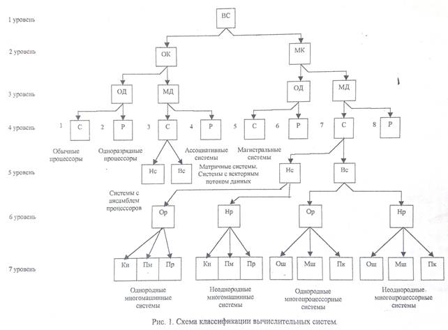 Последние три признака схемы классификации (рис. 1) определяют классы систем со сложной структурой. На схеме показаны классы пятого, шестого и седьмого уровней для реально существующих вычислительных систем.