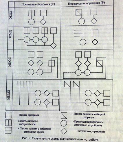 Современные вычислительные системы имеют сложную организацию структуры и функционирования. Описание систем на базе четырех классов ОКОД ОКМД, МКОД, МКМД оказывается слишком грубым. Для более детального описания целесообразно учитывать признаки пословной и поразрядной обработки следующим образом.