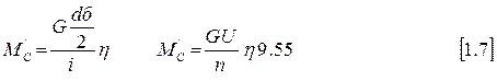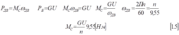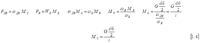 Условия вывода формул: Рдв = Рб, Мдв =Мб = Мс’.