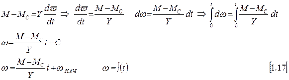 Неустановившееся механическое движение при постоянном моменте двигателя и моменте статическом.