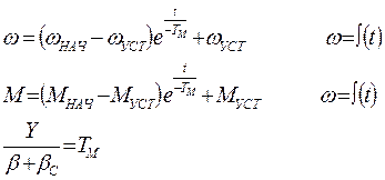 ω = ƒ(t); М = ƒ(t); φ = ƒ(t).