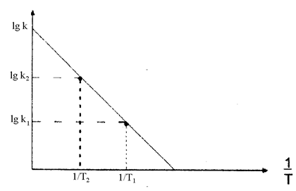 lg k и 1/Т (рис. 44). Для ее построения необходимо опытным путем определить несколько значений k при разных температурах Т. Тангенс угла наклона прямой равен