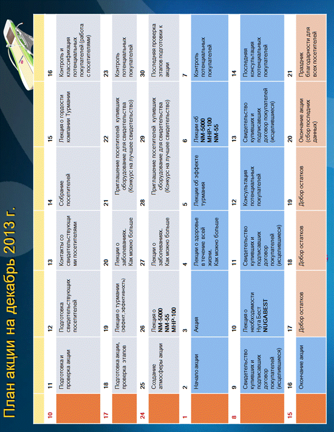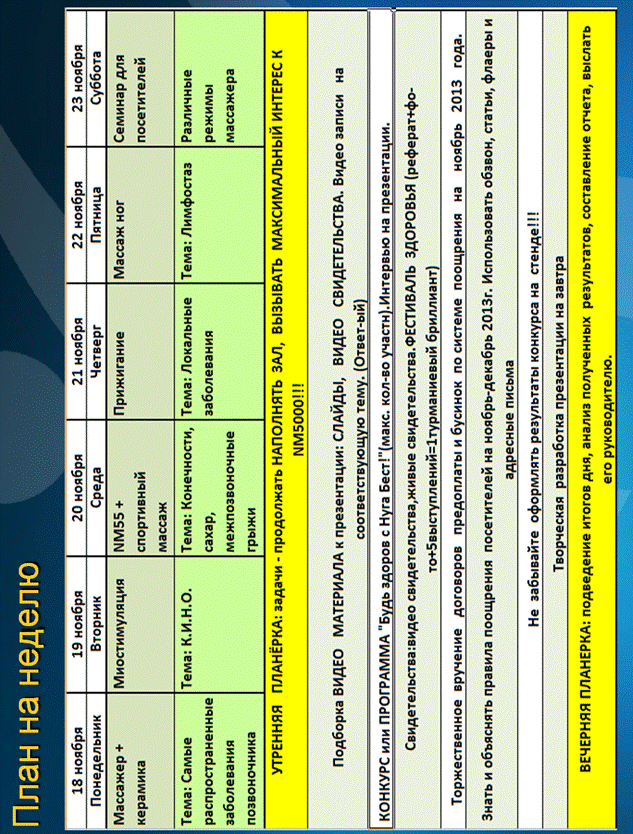 Важно! Необходимо определить на каждый день темы продающих презентаций.