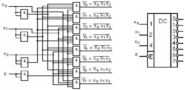 Рис. 3. 1. Структурная и логическая схемы дешифратора