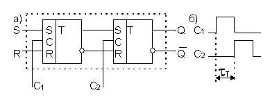 В однотактных триггерах устойчивость работы обеспечивается только в том случае, если занесение очередной информации в триггер осуществляется после завершения передачи информации о прежнем его состоянии в другое устройство. Это требование может быть реализовано с помощью двуступенчатых триггеров, где запись информации осуществляется с помощью двух синхросигналов.