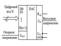Микросхема ЦАП можно представить в виде блока (рис. 15.4), имеющего несколько цифровых входов и один аналоговый выход. В целом микросхемы АЦП сложнее, чем микросхемы ЦАП.