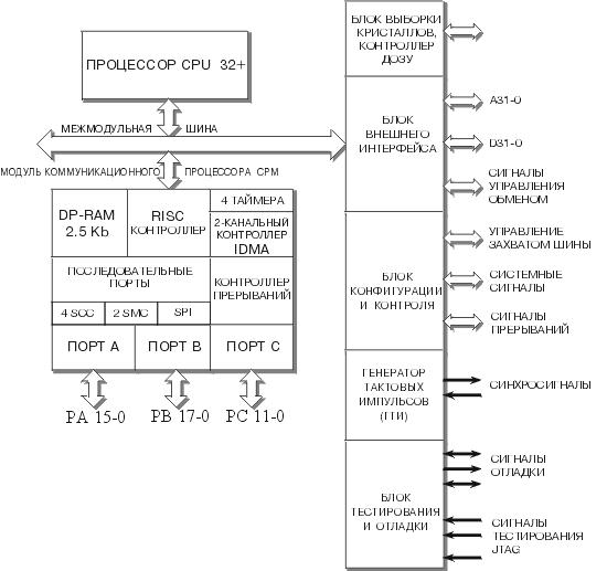 Рис. 15.1. Общая структура коммуникационного процессора MC68360.